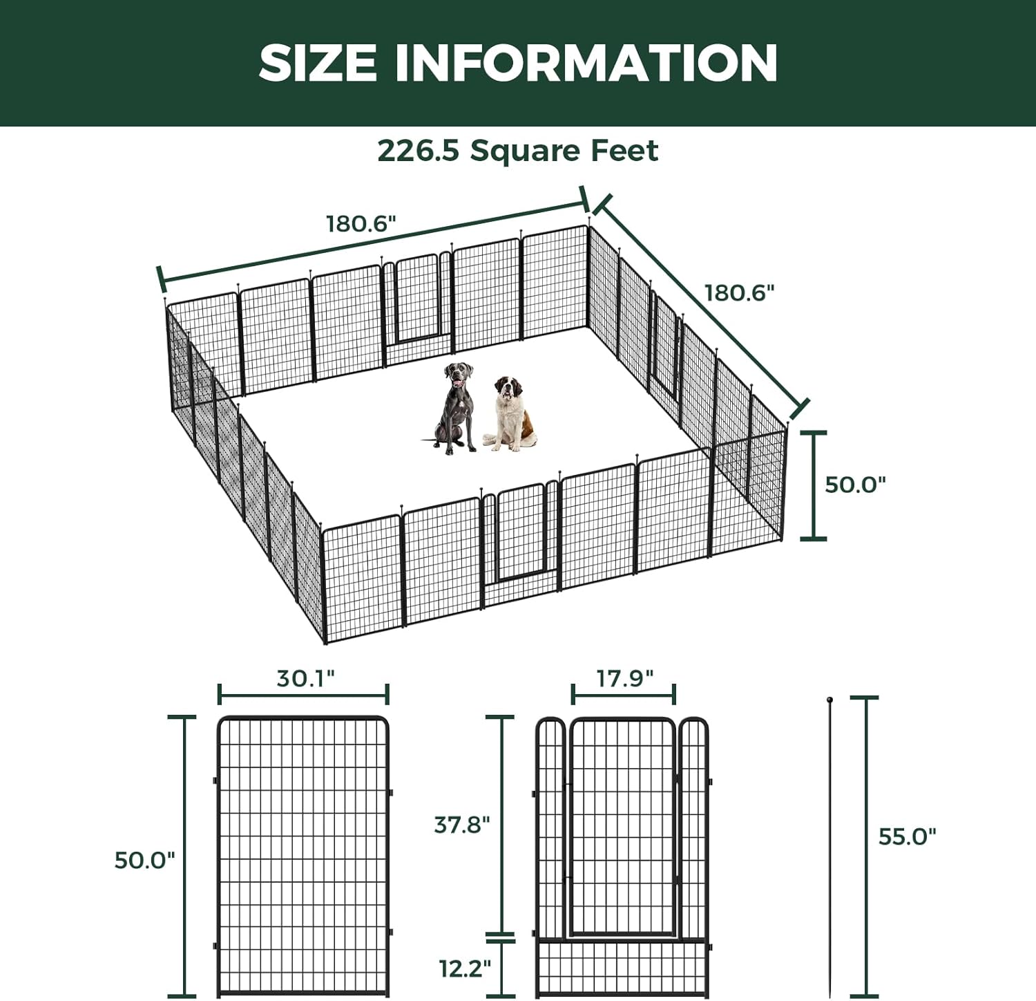 - Super easy to assemble: It won’t take you more than 5 minutes to assemble these portable dog fences as well as pack them away due to the rod-connected design. Meanwhile, panels can be added or removed freely to give you a fully flexible area and arrange the dog pen in any shape you need.
