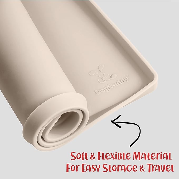- Easy To Use: Smooth surface of DogBuddy Dog Food Mat is better at preventing dog bowls from sliding due to a stronger contact with the bowl. The mat can be rolled up for storage.