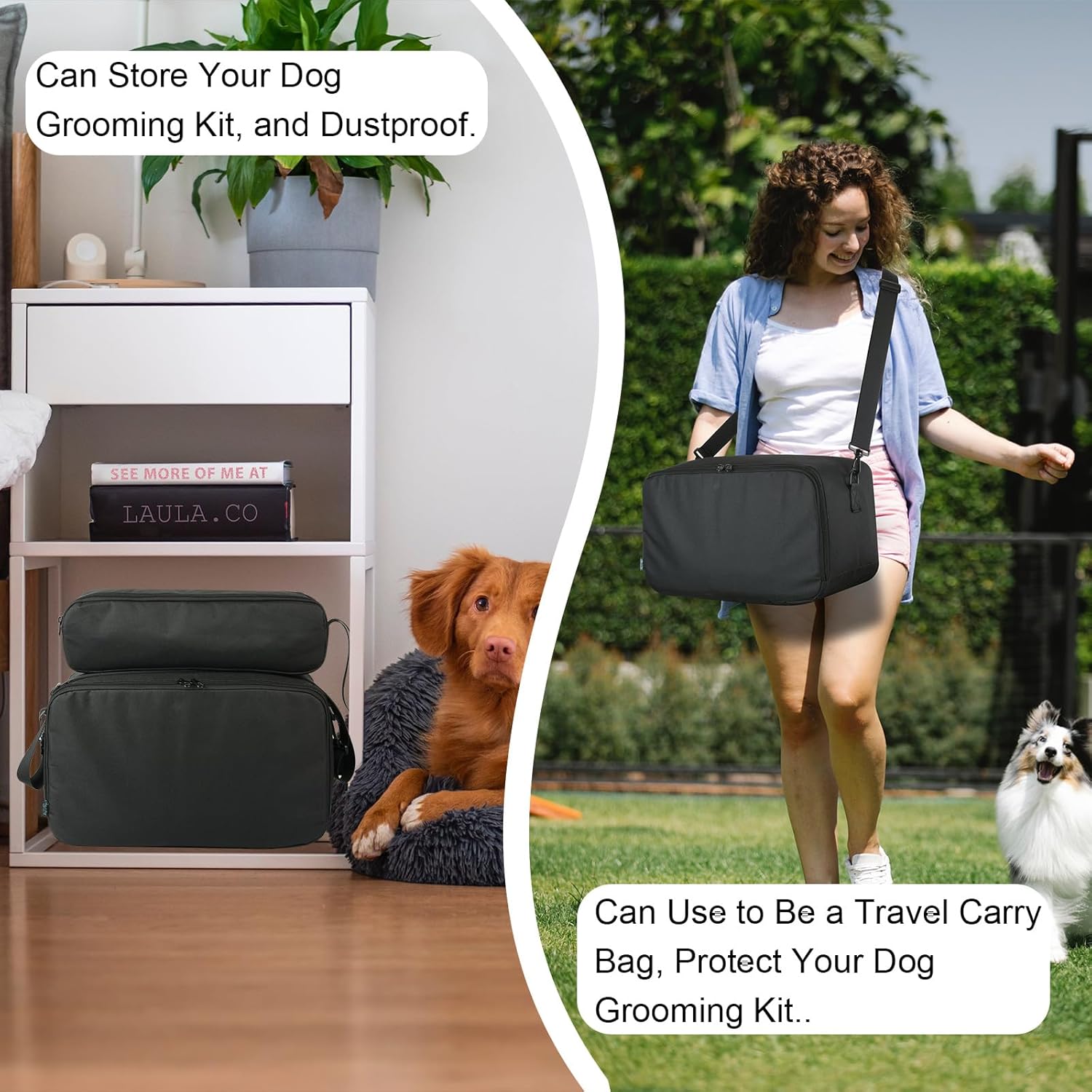 - With a Detachable Shoulder Strap: when you go out, you can use this bag with shoulder strap to protect and carry your dog grooming vacuum for shedding, take the set easily and free your hands; when at home, you can use it to store your pet grooming vacuum for dogs, making your home organized and can be used dust-proof at the same time.