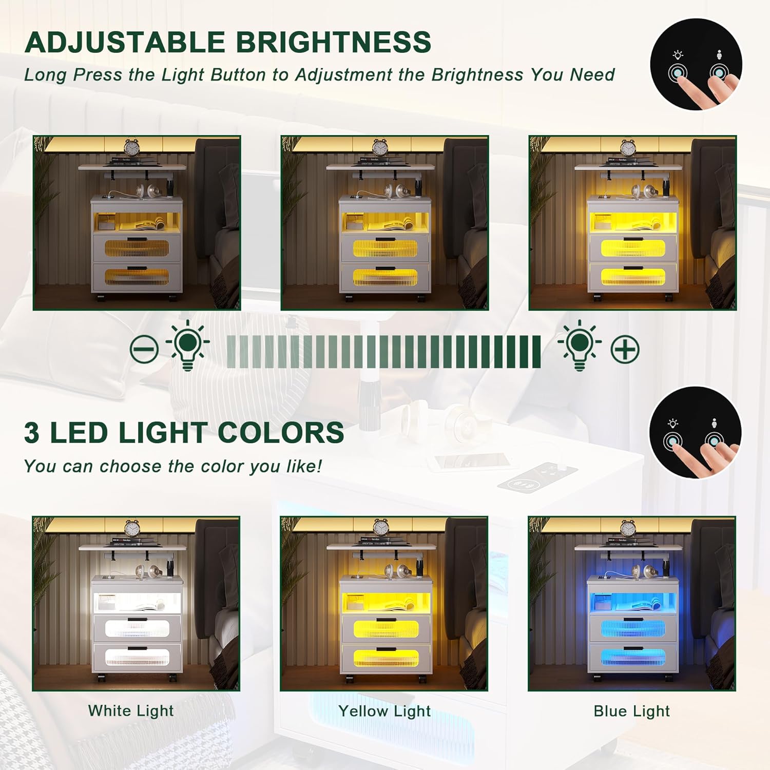 - ✅【Sensor 3-Color Light】 The bedside table light can be set to automatically sense-turn on automatically when approaching, and turn off automatically when you leave; you can also set the manual button to switch the light. The light has three colors: white/blue/yellow!