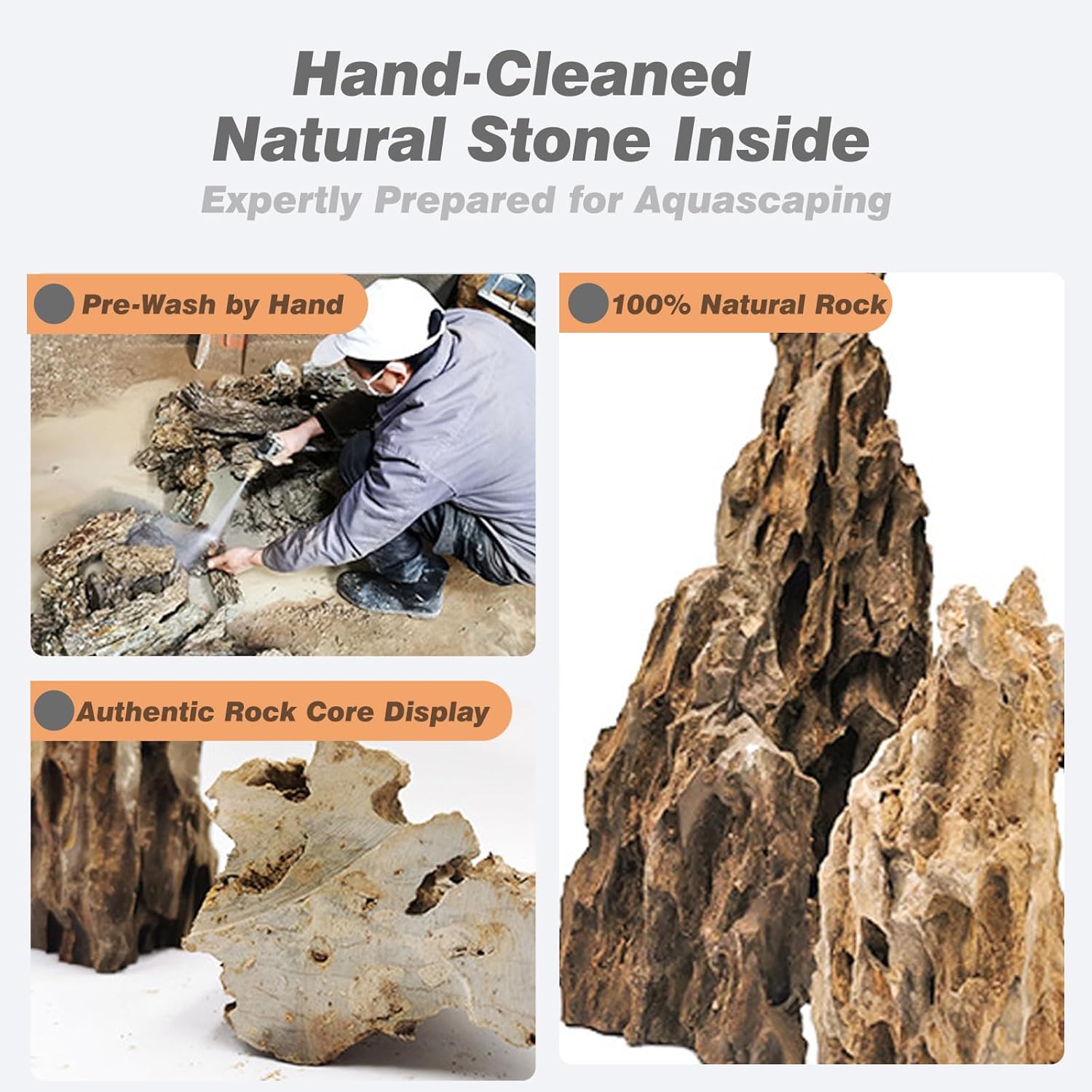 - ⛰Endless Creative Possibilities: Use Dragon Stone aquascaping stone to create mountains, caves, underwater gardens, or artistic displays. Combine with aquarium sand, lava rock, gravel, or plants for DIY aquascape setups, making it an excellent choice for both beginners and professional aquascapers.