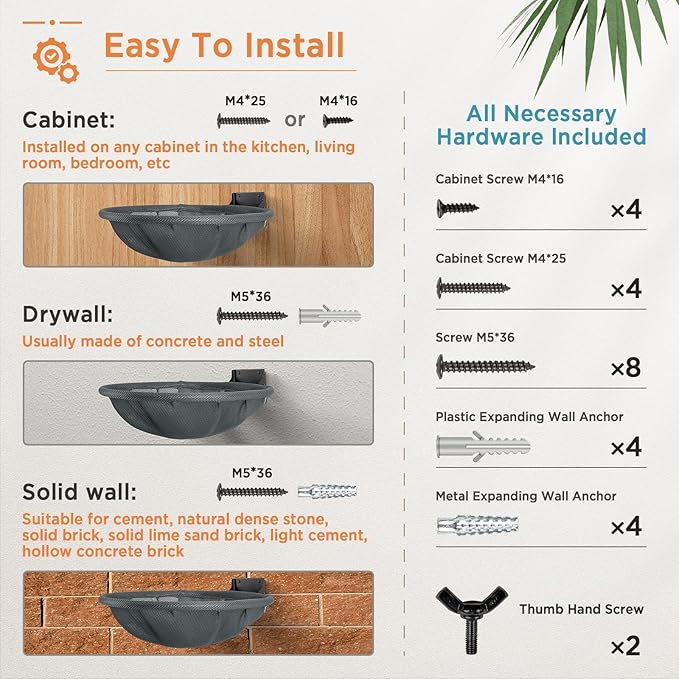 - Breathable & Comfortable: The cover that comes with this wall hammock is high-quality breathable sandwich mesh fabric, It can be moisture-proof and stuffy, fresh, and breathable, which can help lose heat in hot summer. The round hammock design allows cats to lie on it more comfortably and feel secure.