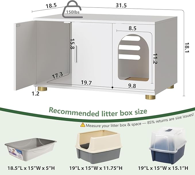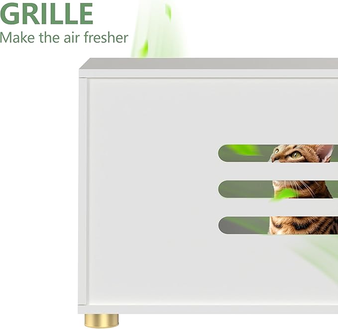 - Large Space: Our cat litter box enclosure furniture has a through-type design without partitions, suitable for longer litter boxes and easier to clean.