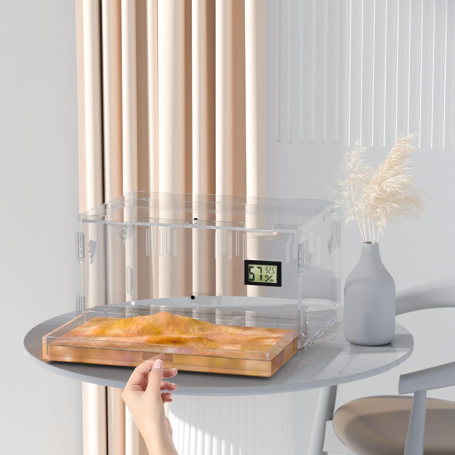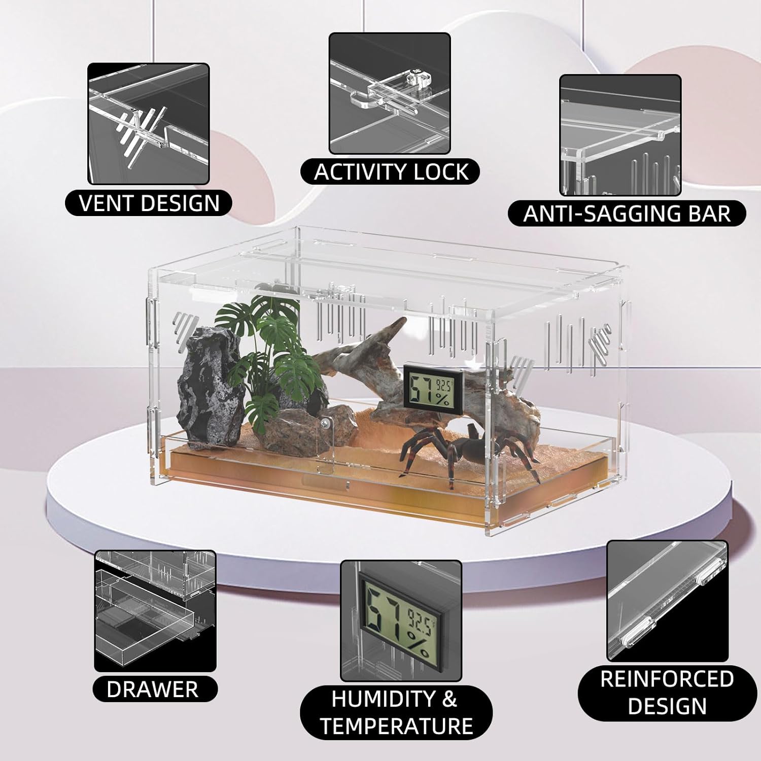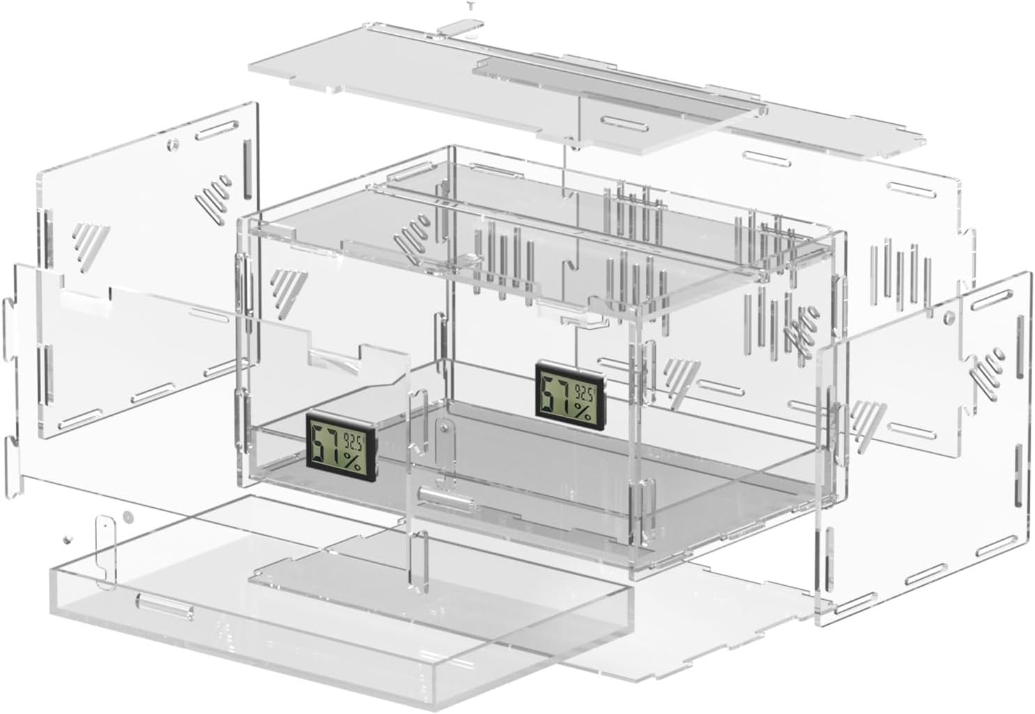 Reptile Terrariums with Temperature Hygrometer, 11.8"x7.9"x5.9" Acrylic Breeding Box Terrarium Cage Tank for Small Reptile Insect Home Office (Terrestrial)