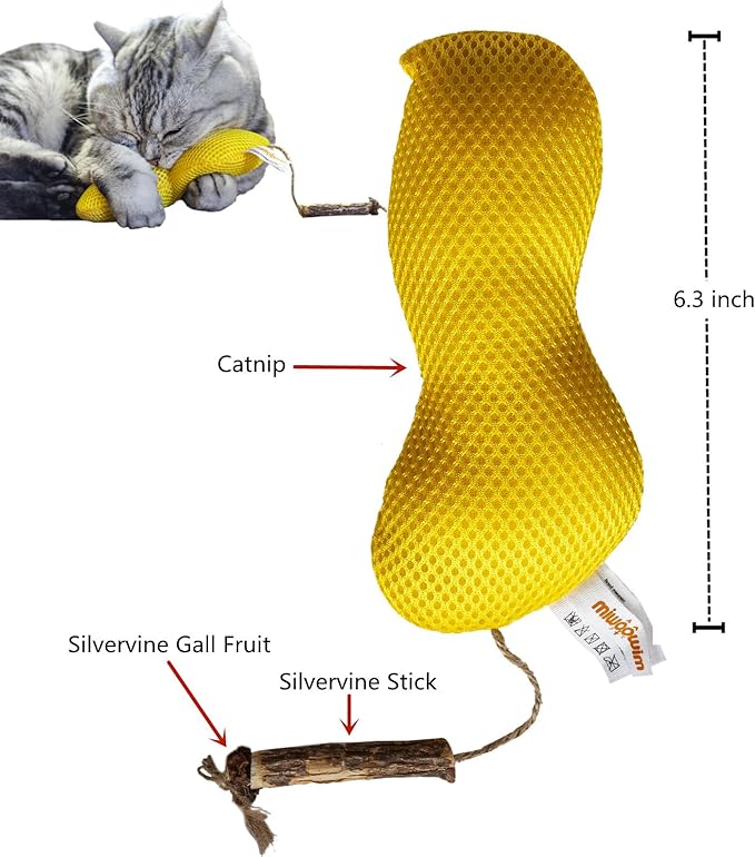- 【4PCS Toys with three cat attractants】One mouse, two peanuts and one saury, These soft cotton catnip peanut fish mice toys for cats are filled with natural catnip and feature tails with matabi cat chew sticks and whole silvervine fruit galls ! The purrr-fect cat attractant combo to get your cat playing, rolling and purring.