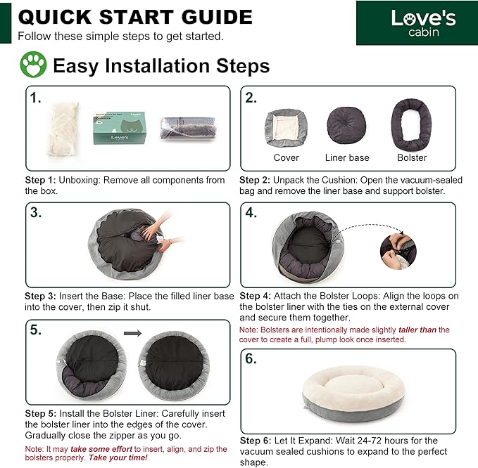 - Design Features: Love's cabin dog beds feature nest-like walls, round pet bed offers a safe, warm cozy place for large dog to snooze.In order to better maintain the shape of the donut nest,our interior filling is 25% more than most competition.