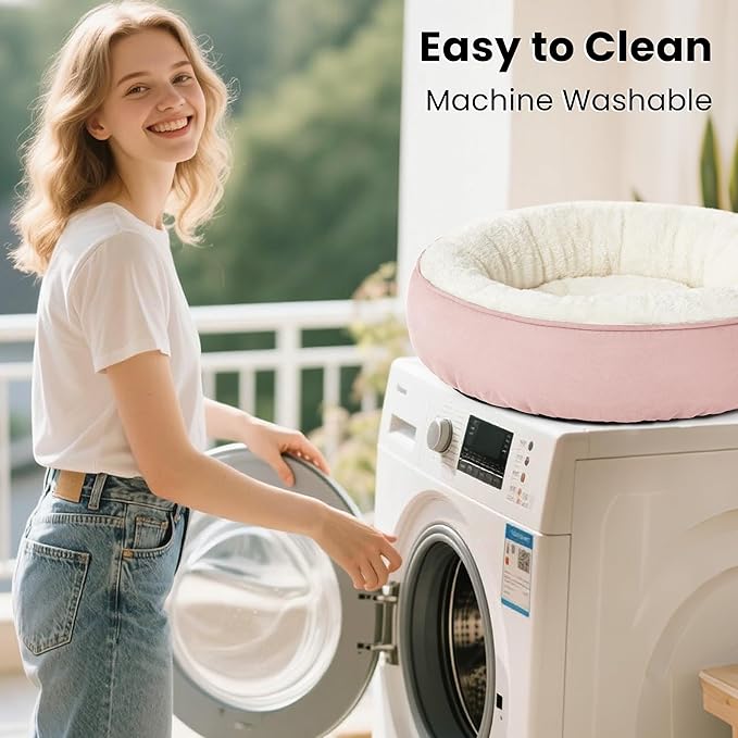 Love's cabin Round Donut Cat and Dog Cushion Bed, 30in Pet Bed for Medium or Large Dogs, Anti-Slip & Water-Resistant Bottom, Soft Durable Fabric Pet beds, Washable Calming Cat & Dog Bed Pink