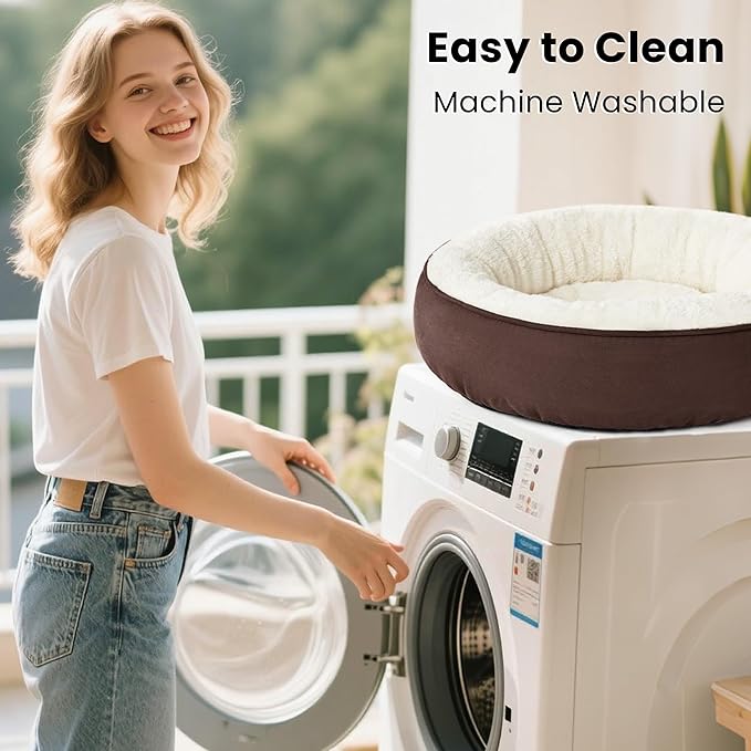 Love's cabin Round Donut Cat and Dog Cushion Bed, 30in Pet Bed for Medium or Large Dogs, Anti-Slip & Water-Resistant Bottom, Soft Durable Fabric Pet beds, Washable Calming Cat & Dog Bed Brown