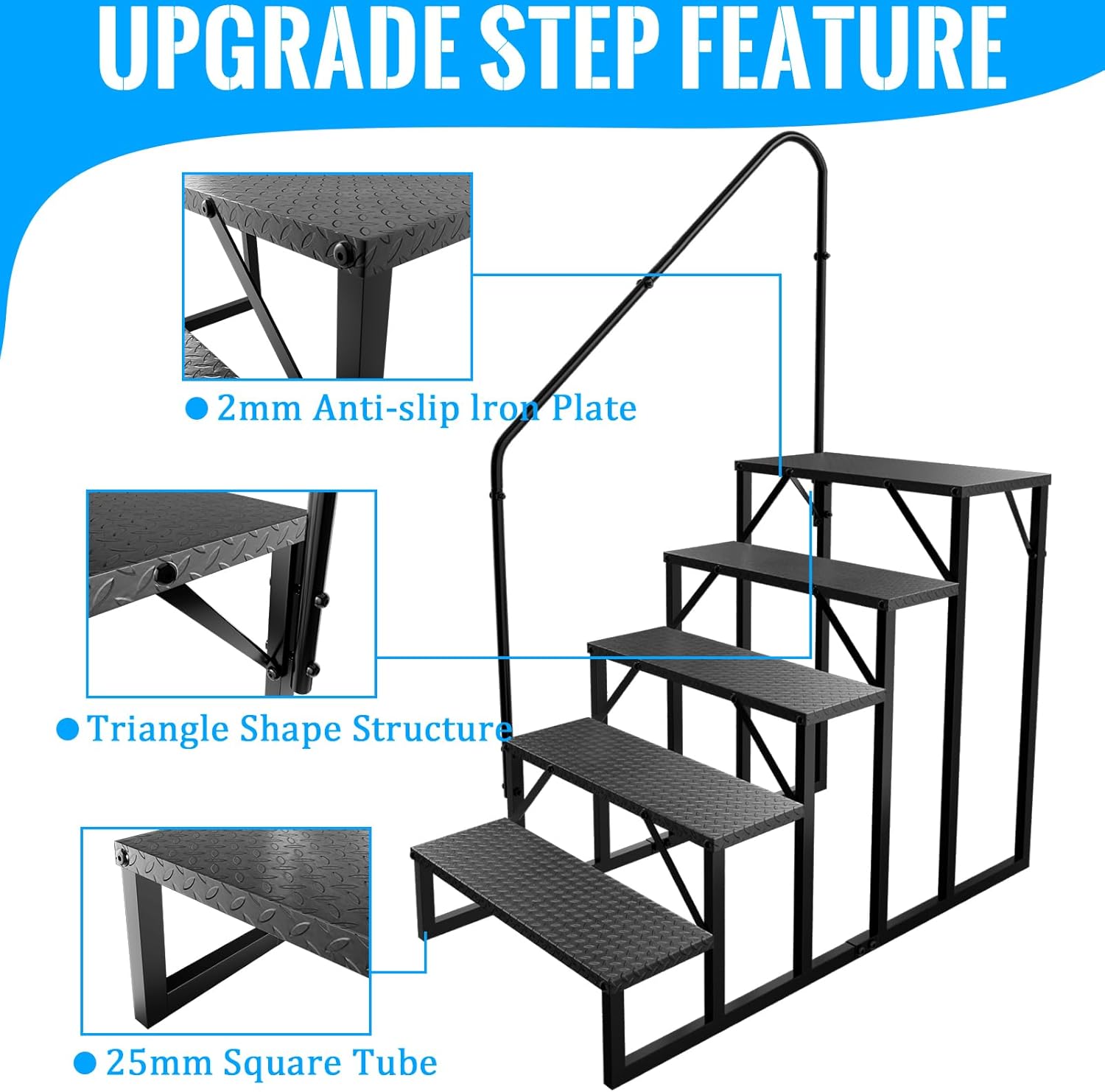RV Stairs 5 Step, RV Steps Anti-Slip, Hot Tub Steps with Handrail, 660 lbs Hot Tub Steps Step Ladder for 5th Wheel RV, Mobile Home Stairs, REL-0402