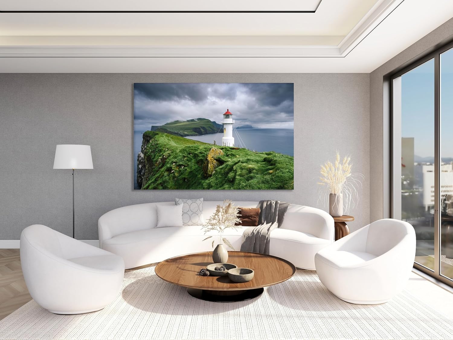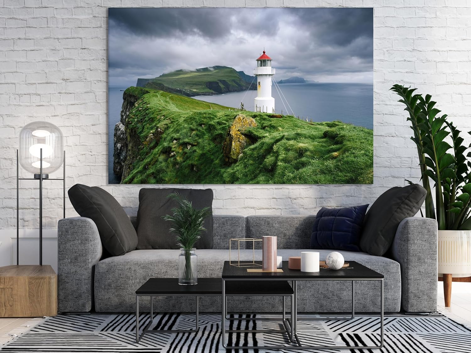 Nature Wall Art Prints - Ocean Forest Mountain Lake Canvas Landscapes - Small to Extra Large Living Room Bedroom Kitchen Bathroom Décor (Stormy Sky Lighthouse, 20L" x 30W")