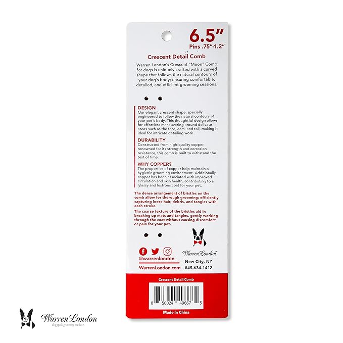 - GROOM LIKE A PRO – Elevate your pet grooming routine with the Copper Crescent Comb by Warren London, designed for precision, comfort, and effortless coat care. Perfect for professional groomers and pet owners alike, this high-performance comb glides smoothly through fur for a sleek, polished finish.