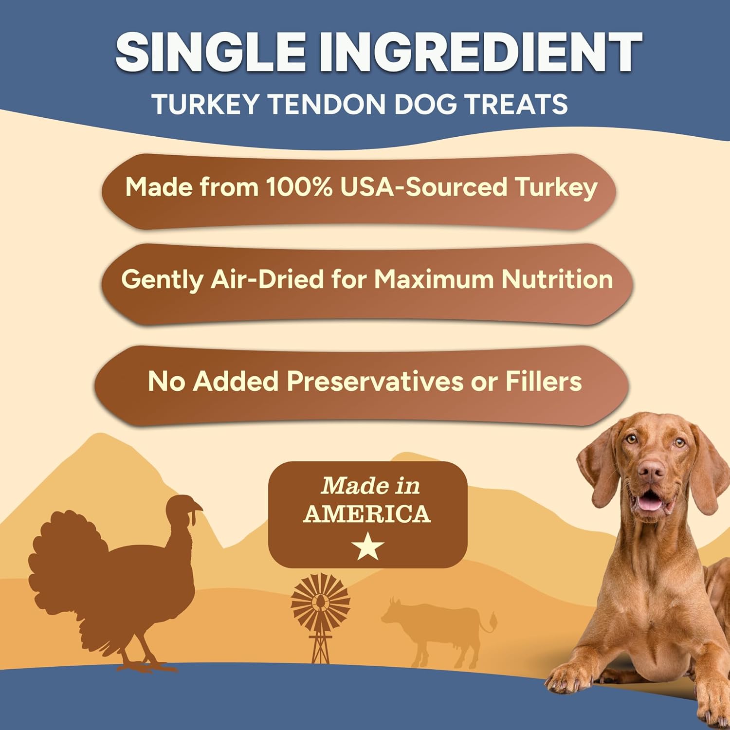 - MADE IN THE USA, FAMILY FARM SOURCED: Sourced from family-owned farms in the USA, our turkey tendon chips contain no fillers, additives, or preservatives, ensuring a safe, high-quality, and nutritious treat for your dog.