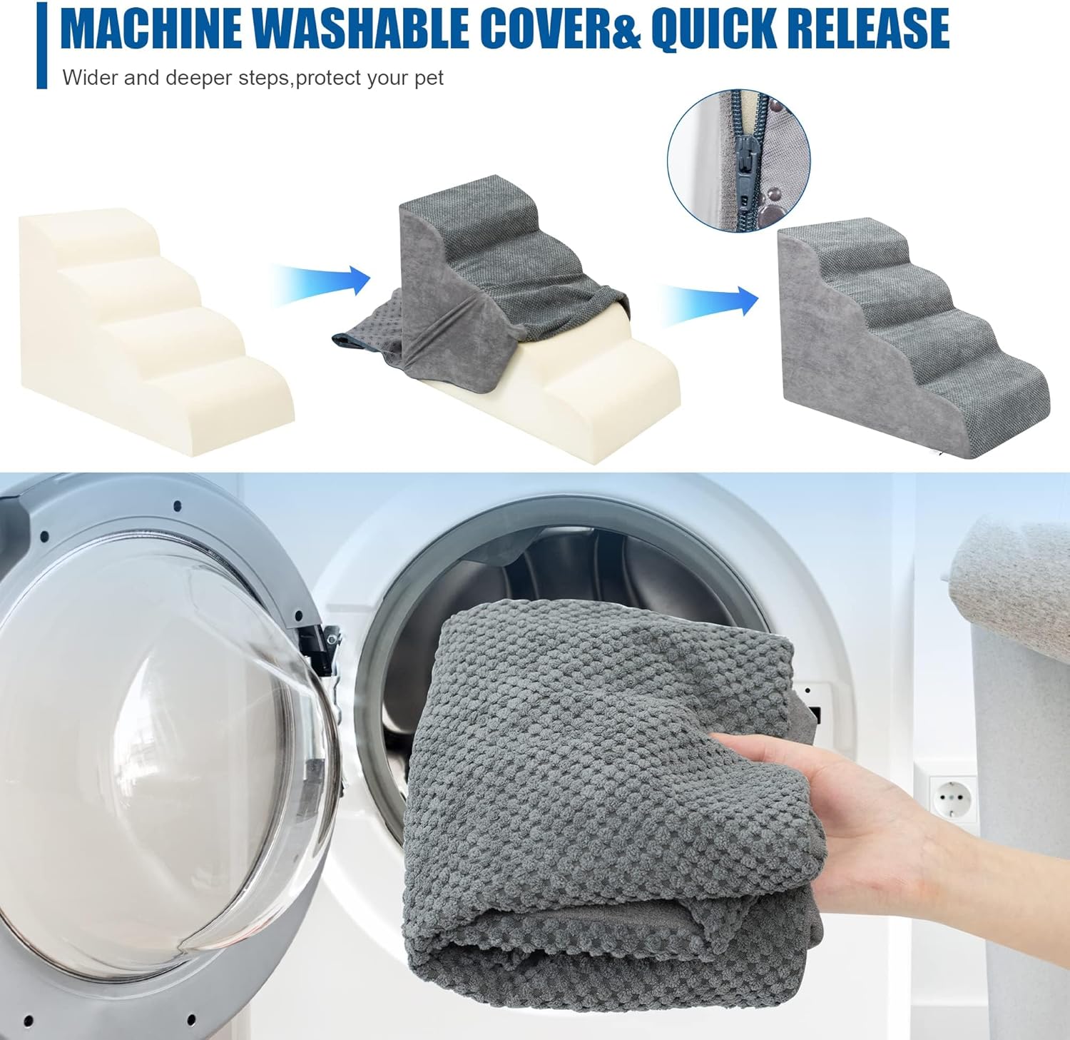 - Double Sided Anti Slip: The dog steps cover is made of corduroy with greater friction than other fabrics, which provides extra grip while in use, the bottom features nonslip rubber dots, preventing pets from sliding while climbing, providing pets with double safety protection