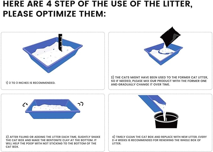 - Health and Safety for Your Cat with Long-Lasting Performance: Made from natural, non-toxic ingredients, our cat litter ensures your cat's health and safety while providing long-lasting freshness, reducing the need for frequent changes.