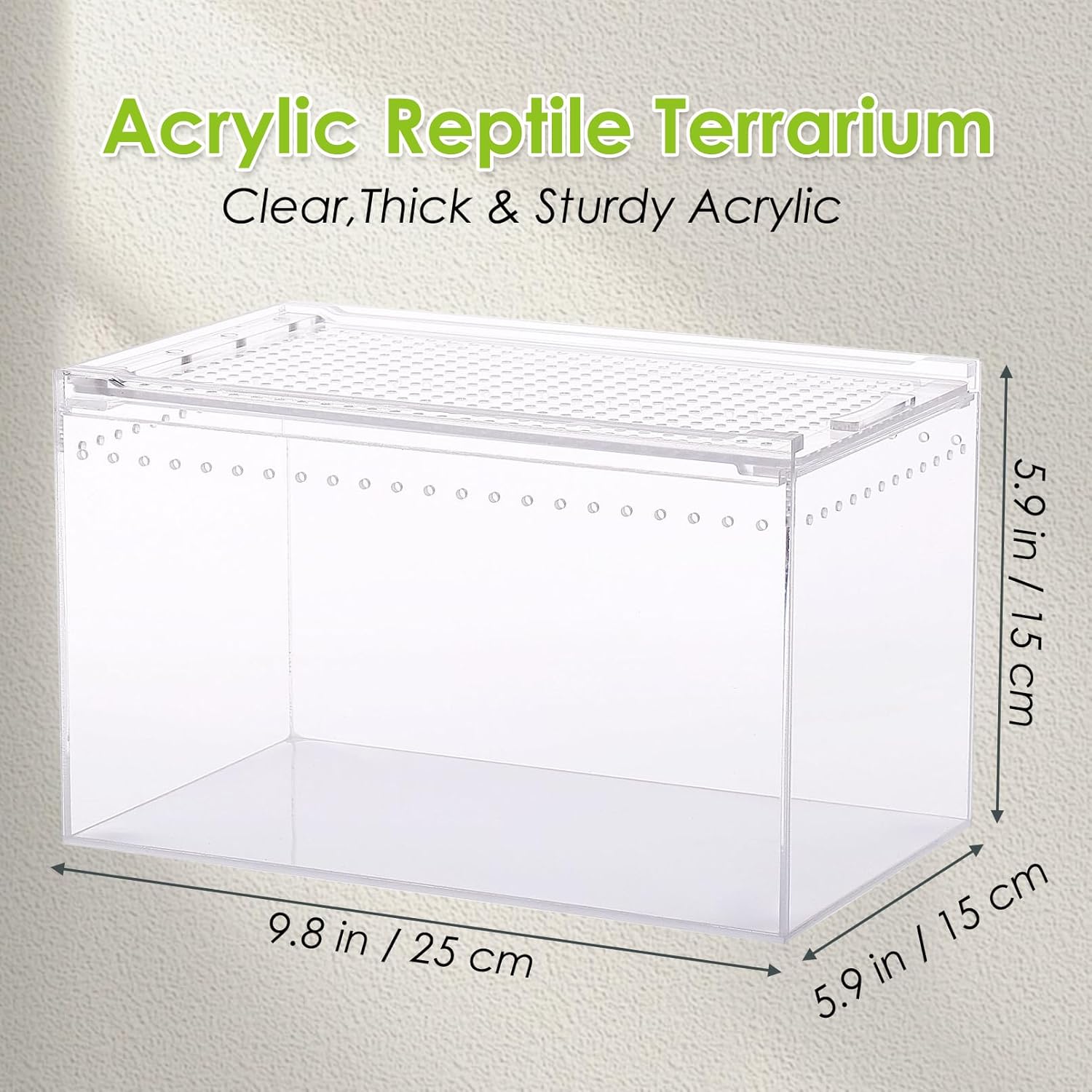 - Acrylic Reptile Terrarium: Reptile enclosure is 9.8 x 5.9 x 5.9 inches, suitable for small reptiles and amphibians or Invertebrates, such as jumper spider, tarantulas, geckos, frogs, mantis, spiders, scorpions, snails or any other insects