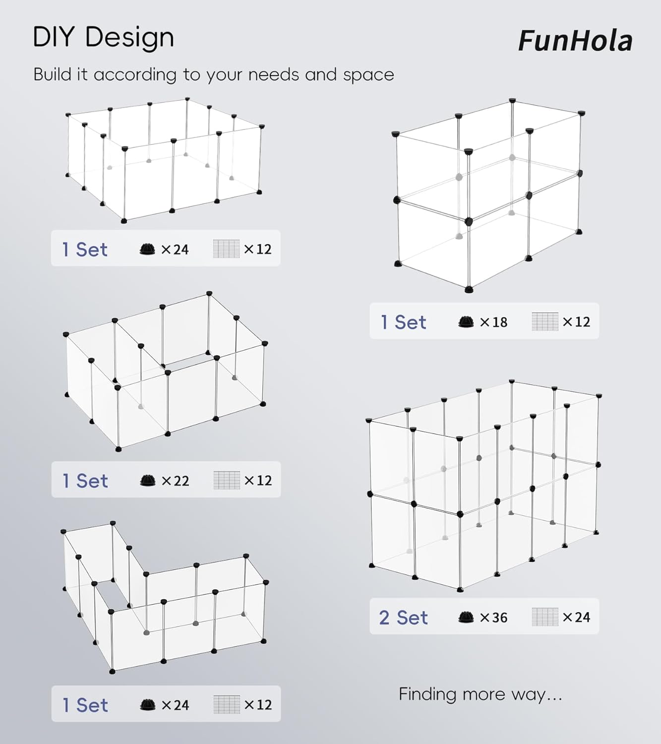 - 𝐒𝐦𝐚𝐥𝐥 𝐂𝐫𝐞𝐚𝐭𝐮𝐫𝐞 𝐂𝐨𝐦𝐟𝐨𝐫𝐭𝐬: This plastic pet fence is designed specifically for your small pets. Offering them a large, stable area to rest, exercise, and play. It's perfect for your guinea pigs, hedgehogs, and hamsters. The assembled dimensions are: 48.5 x 24.8 x 16.1 inches.