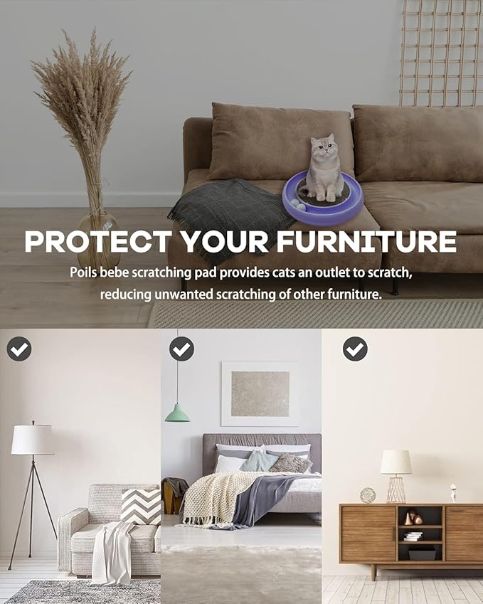 - 【Reversible Scratching Pad】: The center of the cat toy with a replaceable scratching pad. Satisfy your cat's natural scratching instincts and exercise for your cat while reducing potential furniture damage.Besides Maximize the life of the scratcher by flipping it over for a brand new scratching surface.