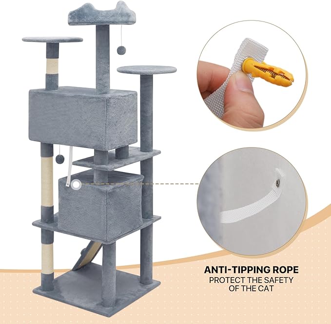 - Multi-Level Fun - Cat tree with multiple levels for endless fun. Features cozy perches, spacious houses, and a variety of platforms for your feline friends to explore, lounge, or nap.