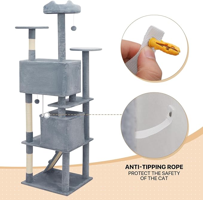 - Multi-Level Fun - Cat tree with multiple levels for endless fun. Features cozy perches, spacious houses, and a variety of platforms for your feline friends to explore, lounge, or nap.
