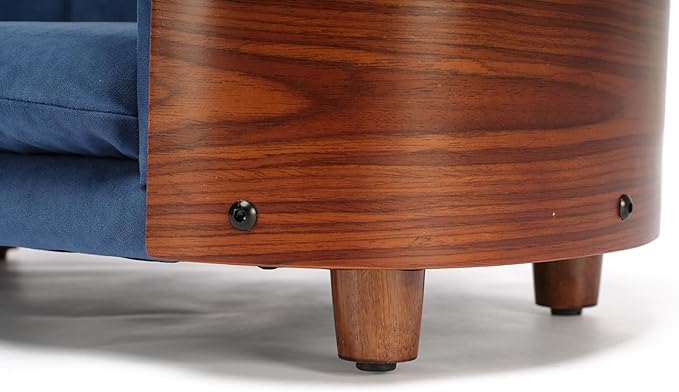 HomSof 26.38" Scandinavian Style Elevated Dog Cat Bed Pet Sofa with Solid Wood Legs and Bent Wood Back with Velvet Cushion,Small Sizeļ¼Navy+Brown