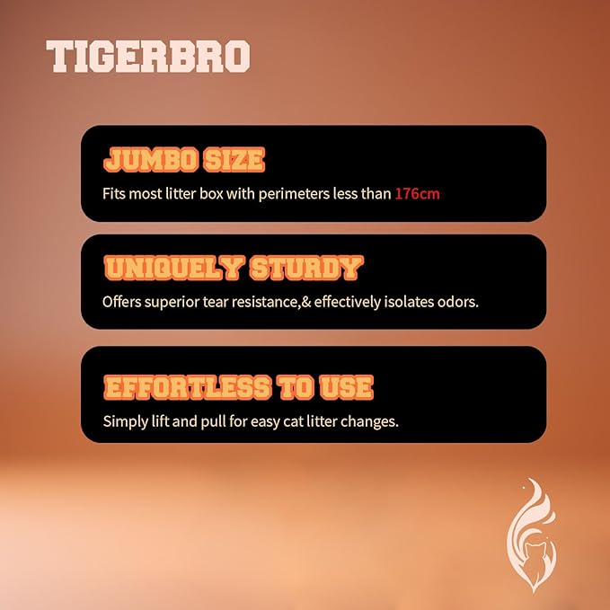 - Robust Build - Our TIGER BRO Drawstring cat litter bags is built to last. Made with heavy-duty materials, it's designed to handle all your kitty litter needs with ease.