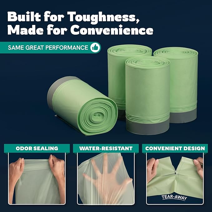 - MADE FROM 100% COMPOSTABLE MATERIALS: Made from plant-based materials, these litter bags break down naturally after use—giving you an easy way to cut plastic waste without giving up convenience.