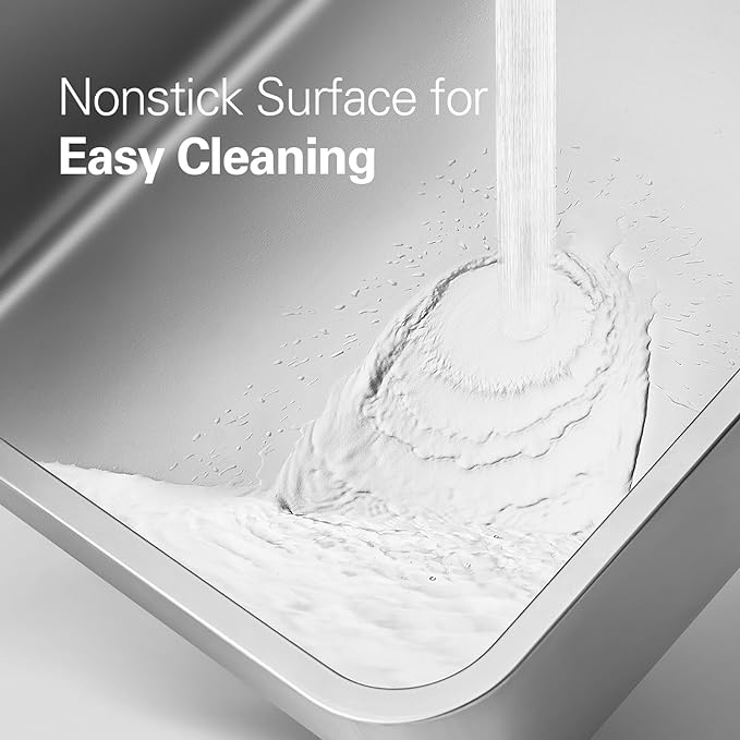 - 【Easy Cleaning for Odor-free Space】: Nonstick surface of the litter box with lid makes cleaning a piece of cake, as waste slides out effortlessly with a quick rinse of water. Unlike plastic litter box, the stainless steel steel box does not absorb stains or odors, maintaining a fresh and hygienic environment for your cat