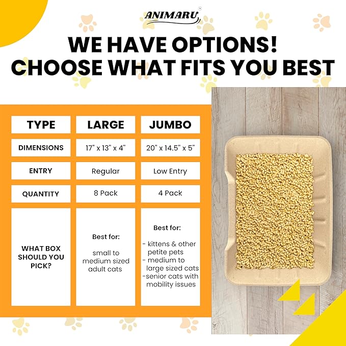 - Low Entry & Jumbo Size: Includes 4 Jumbo Litter Boxes (20" x 14.5" x 5"). Low Entry (3") is ideal for small kittens and senior cats.