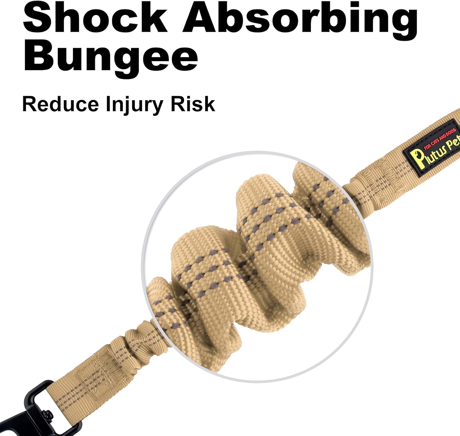 Plutus Pet Dog Seat Belt for Car, Adjustable Dog Car Harness with Carabiner Clip, Reflective Safety Dog Seatbelt Leash with Elastic Bungee, Beige