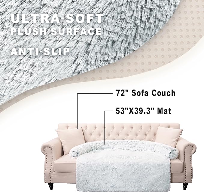 Calming Dogs/Cats Bed Mats, Dog Pad Washable Removable Couch Cover, Plush Long Fur Mat for Pets, Waterproof Lining, Perfect for Small, Medium and Large Dogs and Cats (Gradient Gray, 53"x39")