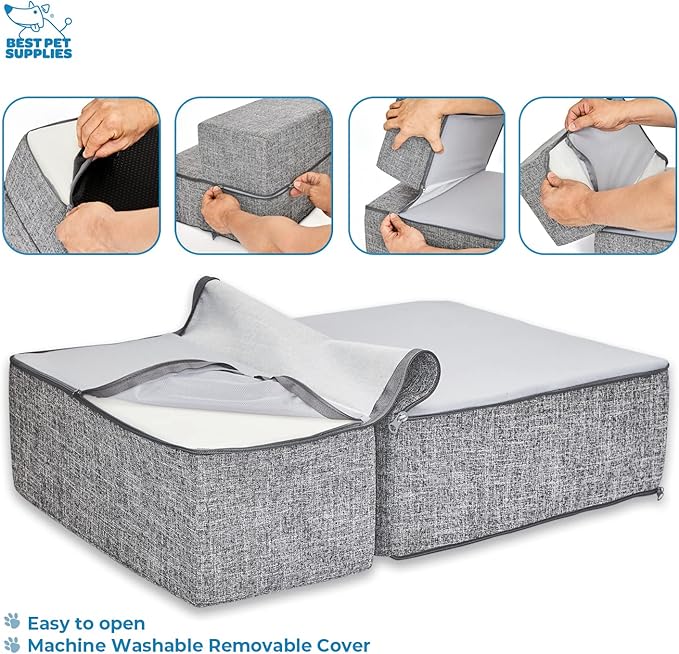 - STYLISH HOME ADDITION: Select steps for dogs to get on bed in trendy colors and patterns to match your decor, featuring removable covers that make it easy to maintain style