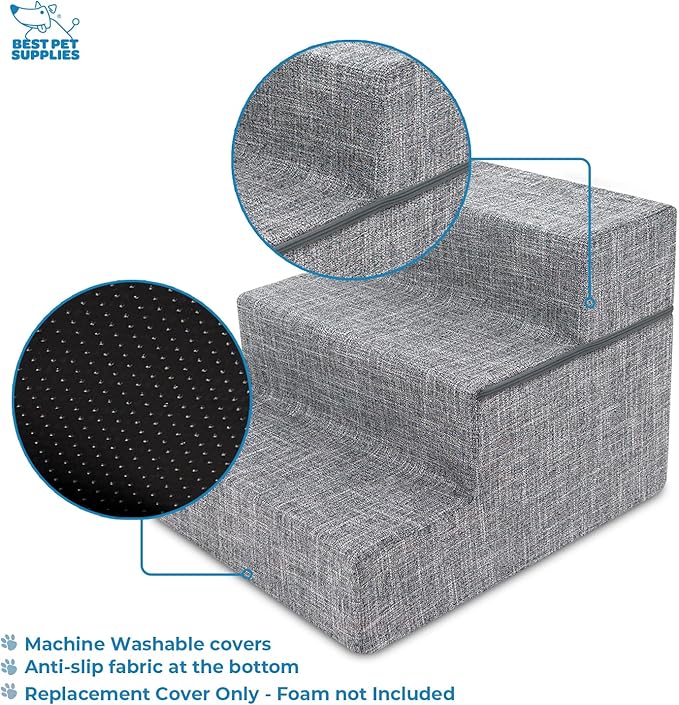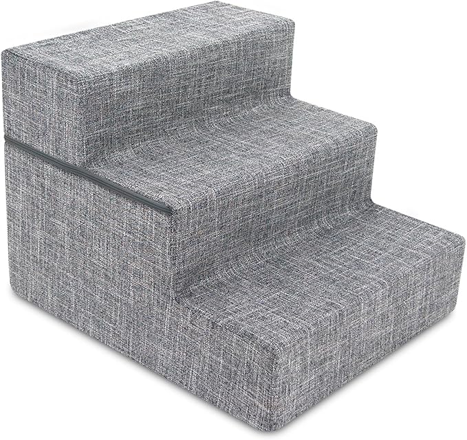 Best Pet Supplies Dog Stairs & Steps - Foam Steps for Small Dogs & Cats, Non-Slip Indoor Balanced Pet Step Support, Dog Ramp, No Assembly, Ash Gray Linen, Foldable 3-Step (16.5-inch Height)