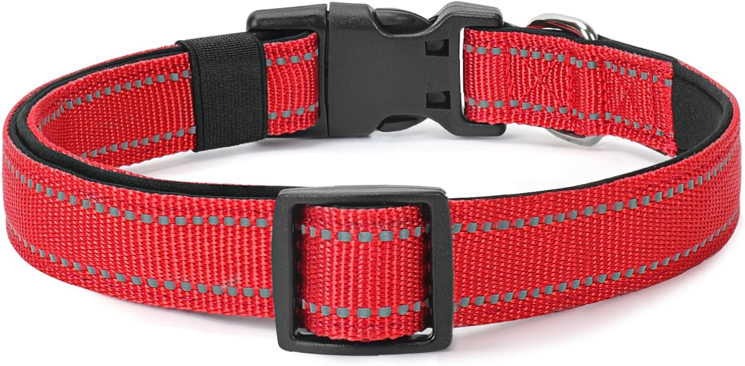 Reflective Dog Collar Padded with Soft Neoprene Breathable Quick Release Basic Dog Collars for Medium Large Dogs Red Boy Girl