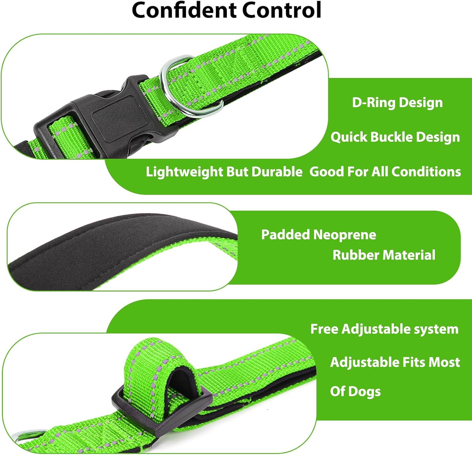 Reflective Dog Collar Padded with Soft Neoprene Breathable Quick Release Basic Dog Collars for Medium Dogs Green Boy Girl