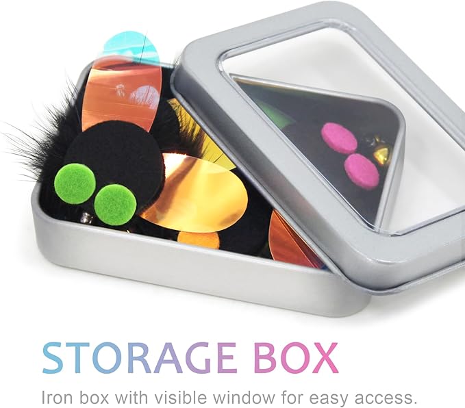 - [Easy Storage and Use] All the cat toy wand refills were in a iron storage box, which is very practical and environment friendly. You can also use it to store similar small items.