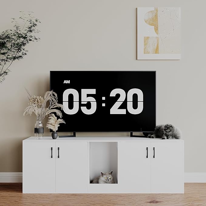 - 【Cat house】Use it as a side table or litter box TV stand for your convenience.Add a cat bed inside for a cozy cat house.Dog proof litter box provide a safe and comfortable space for your cat.