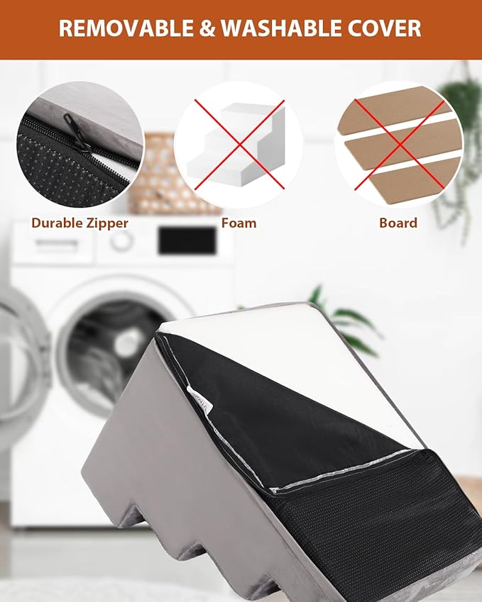 - EASY TO CLEAN & EASY TO ASSEMBLE: The dog stairs require installation. You can refer to the instructions and the video for assembly, which only takes a few minutes. The cover of our dog steps is easily removable and washable. Simply put it in the washing machine with cold water. However, please note that the sponge inside is not washable.