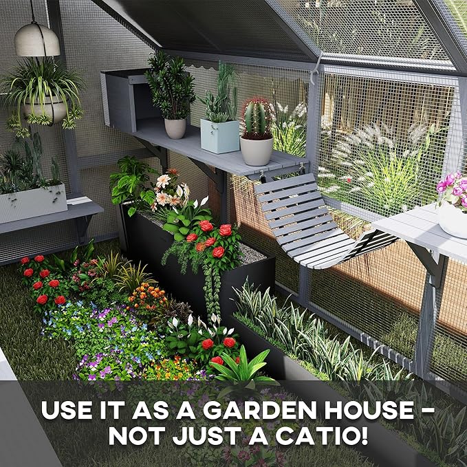 - Effortless Care: The split-door design makes cleaning and feeding easy, providing full access to the catio. The small sliding door lets you connect it to cat tunnels, extending the play area for curious cats.
