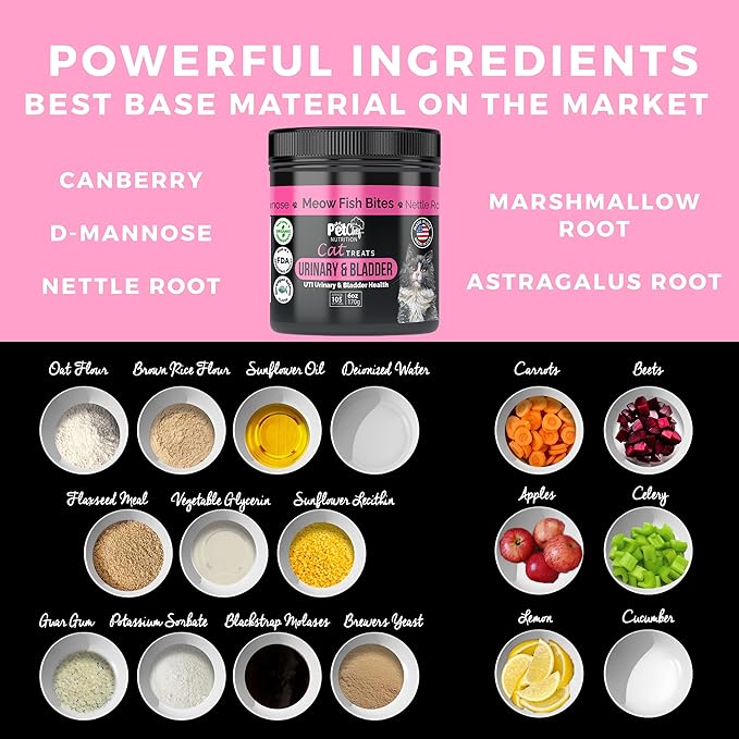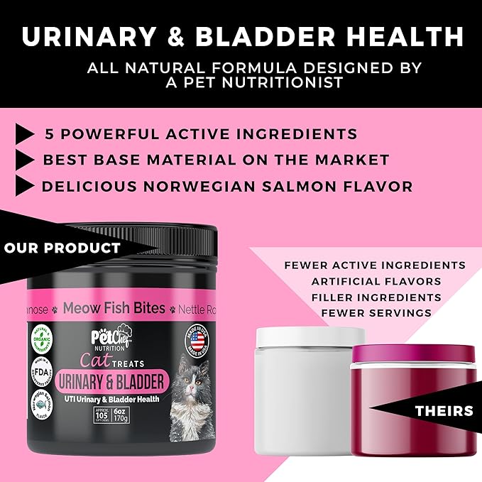 - Natural UTI Prevention: Reduce your cat's risk of painful urinary tract infections with Pet Chef's holistic treats; crafted with organic ingredients to support bladder health naturally, these supplements provide a gentle, highly effective cat UTI remedy, protecting your feline friend with a proactive health approach, bringing peace of mind to cat parents everywhere by safeguarding their beloved pets from discomfort and distress.