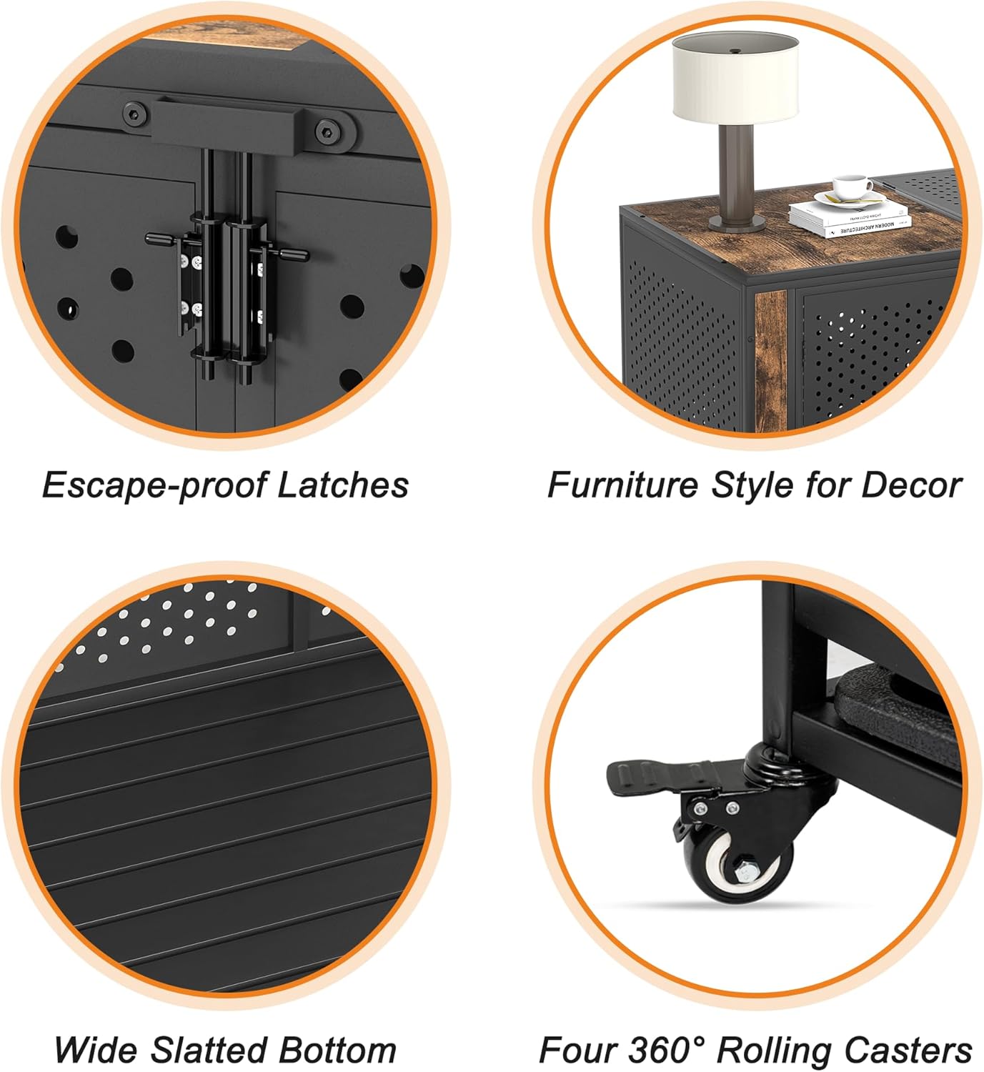 - [Enclosed Design with Ventilation Holes] Unlike traditional crates with metal bars, this innovative design features sturdy panels with strategically placed small holes(Diameter 0.5 inch, specifically designed for dog’s teeth). This design not only prevents the harm caused by bites but also provides ample ventilation for your animal companions.