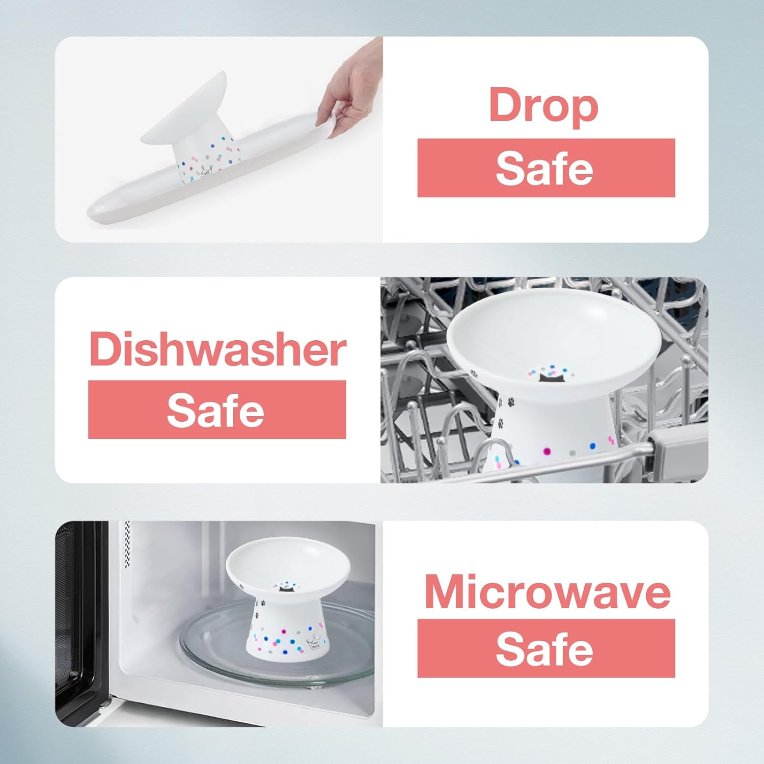 Necoichi Extra Wide Raised Cat Food Bowl, Elevated, Prevent Neck & Whisker Fatigue, Dishwasher and Microwave Safe, No.1 Seller in Japan! (Colorful Dots Limited Edition, Extra Wide Tilted)