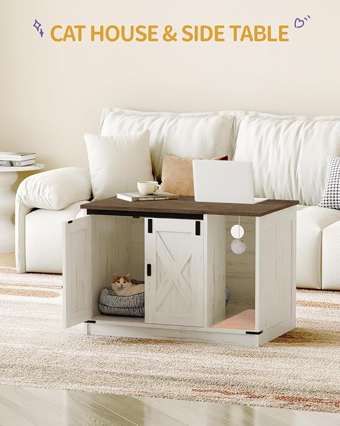 - The Perfect Blend of Family: This rustic style and unique barn door shaped litter box cabinet can be used as a cat litter box or as a finished cat house, giving your cat a comfortable home