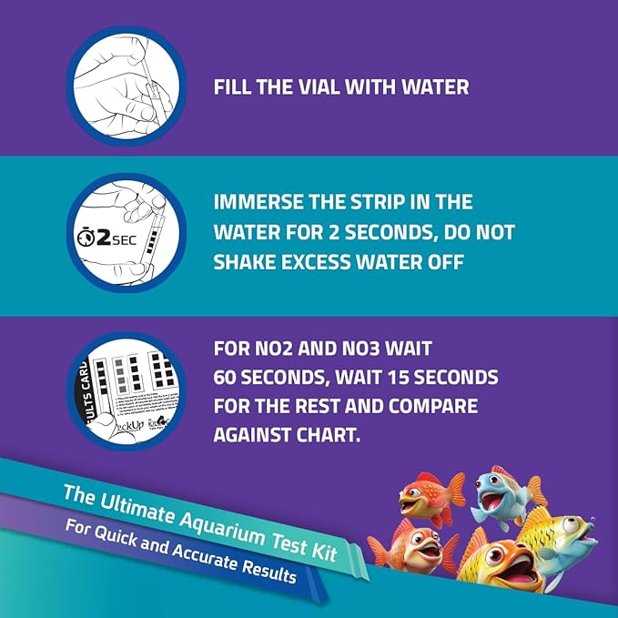 - Quick and easy, streamline fish tank maintenance with our aquarium water test kit. Utilize fish tank test strips to swiftly assess parameters, making adjustments for a healthy aquatic environment in both freshwater and saltwater systems.