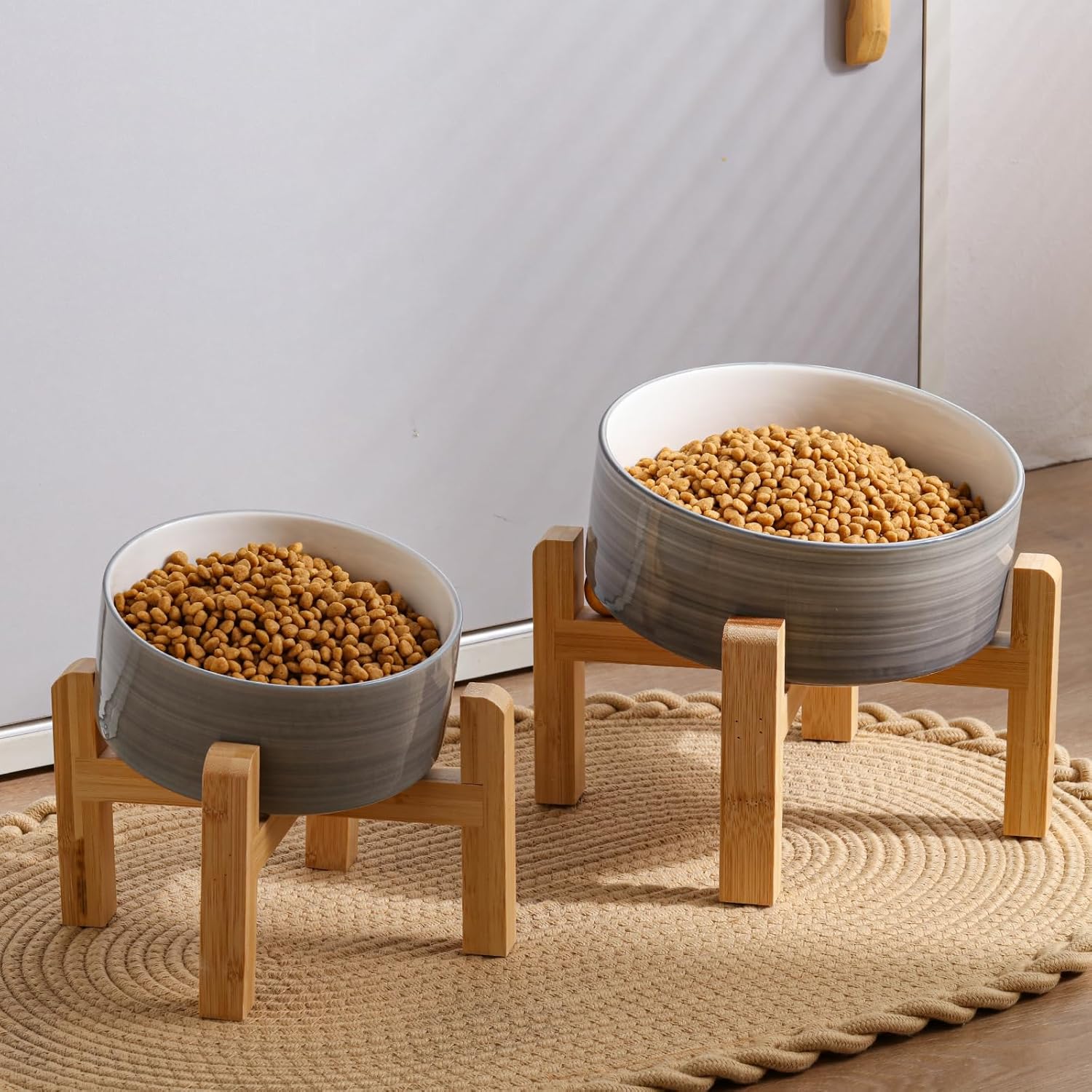 - MODERN DESIGN : cute & Modern Addggo pet bowl with a bamboo wood stand with a non-slip base, suitable for every home style, especially boho home decor.