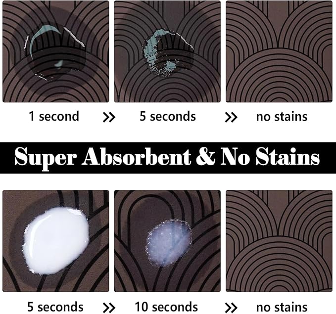 - Absorbent & No Stains: The pet food mat made of high quailty material can absorb spilled water in just a few seconds and leaves no stains. The dog bowl mat provide a dry clean eating area for your puppy.