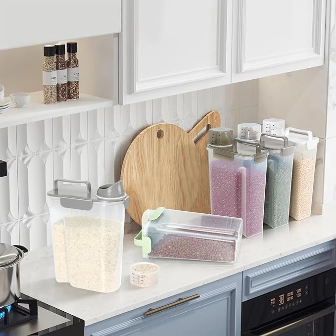- MULTI-PURPOSE STORAGE : Our pet food container is suitable for storing dog food、cat food、bird seed、fish food、rice、 dry food、cereals、oats、flour and other large and small grains, as well as washing powder used at home. It is also a good choice.