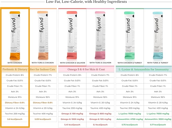 - HUMAN-GRADE PROTEIN SOURCES - Purrly uses only human-grade meat and fish as the primary protein source, exceeding industry standards and ensuring exceptional taste and unmatched nutritional value for your cat. These exquisite treats elevate snack time beyond ordinary treats, offering a truly gourmet experience that satisfies your feline's discerning palate. Each pouch serving unparalled quality and nutrition.