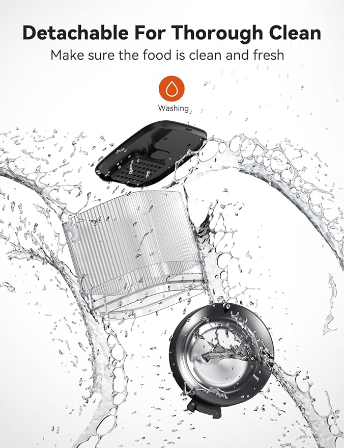 - Reliable Twist-Lock Storage: The automatic cat feeder comes with a unique twist-lock lid, ensuring the perfect amount of dry kibble (sized 0.07-0.47in / 2-12mm in diameter) is securely stored. This design preserves the crunchiness and flavor of the food while keeping it safe from curious paws.