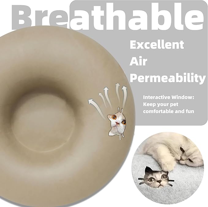 Donut Cat Tunnel Bed Peekaboo Cat Cave for Large Cats Up to 30 Lbs, Kitty Interactive Playing Tent House for Multiple Cats,Detachable,Scratch Resistant (Beige, Large - 24 Inch Diameter)