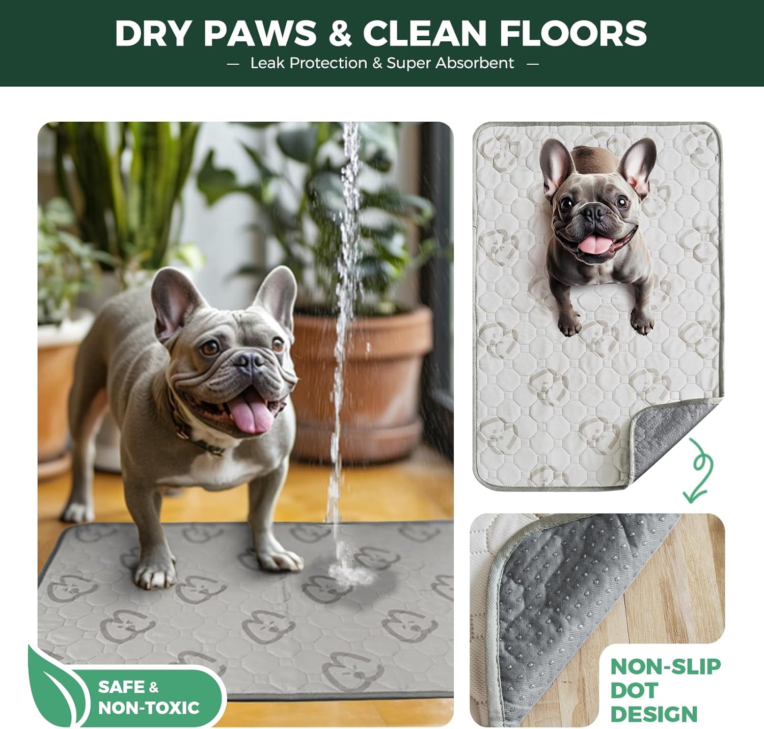 - Over 100x Reusable & Eco-friendly: Our puppy mats are machine washable and built to last over 100 uses. These reusable puppy pads for dogs are an eco-friendly, cost-saving choice — our dog training pad costs 5 times less per use than disposables.